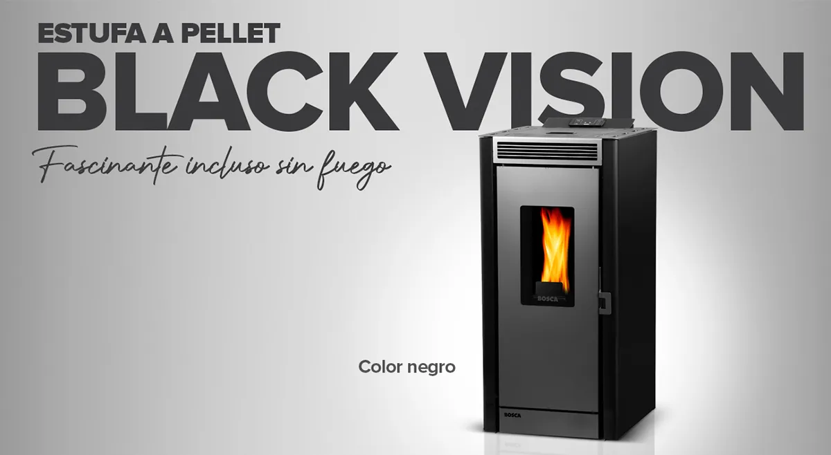 La Black Visión es una estufa de combustión a pellet estéticamente versátil, perfecto para acoplarse a tu decoración. Esta estufa cuenta con un sistema de control inteligente, es programable y puedes adaptarla a tus horarios/preferencias de uso y sus paneles interiores son desmontables, para facilitar su limpieza. Además, posee un cristal vitrocerámico SCHOTT ROBAX® NightView que mejora la visión del fuego cuando está encendida y deja invisible los residuos cuando está apagada.